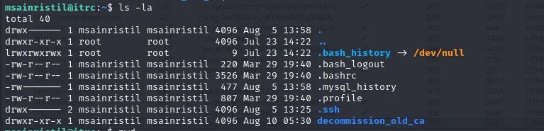 /var/www/itrc/uploadsleak credentials, allowing SSH access as msainristil, then certificate-based pivot to zzinter. - Private CA misuse enables generating arbitrary SSH certs via